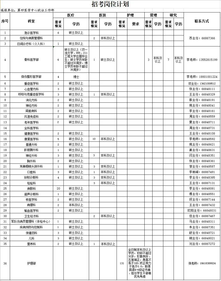 >> 解放军总医院第四医学中心招聘岗位及要求