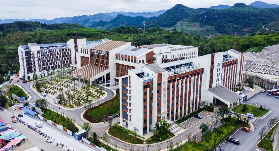 盘州市中医医院新院区占地面积 107 亩,总建筑面积约 97,000 平方米,编制床位 970 张,建设现代化手术室 7 间,医疗配置与医院功能相得益彰。新院区设计荣获多项国际大奖(ASLA 南加州奖、德国国家设计奖、伦敦设计奖),设计理念体现中医哲学思维,将景观设计与传统阴阳五行融合在一起,为患者创造全新的疗养空间,也为医务工作者提供凝心静气、思考休憩的舒缓场所。