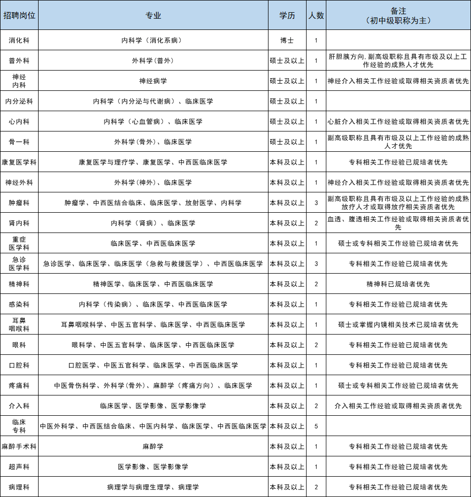 薪资待遇等同在编人员,提供食宿。有执业医师证和规培证者,安家费 10 万元,紧缺专业如:精神科、眼科、耳鼻咽喉科、口腔科、皮肤科、病理科、超声科、疼痛科、120 急救站、急诊科、重症监护室、感染科优先进编,安家费可达 15 万元。