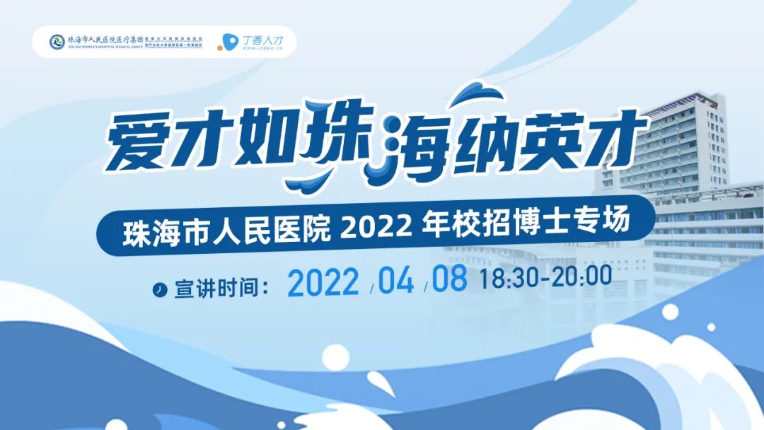 珠海市人民医院(暨南大学附属珠海医院,澳门科技大学医学院第一附属医院)线上宣讲会等你加入 2022 年 4 月 8 日 18:30~20:00期待与你一起踏上新征程参加宣讲会,超值奖品等你拿哦