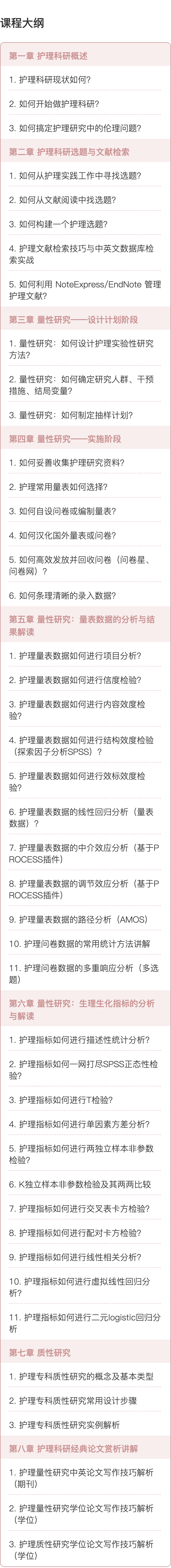 本课程所有案例以及统计分析方法介绍,都是从护理专科出发,更加贴近护理人员的研究模式,更易理解。