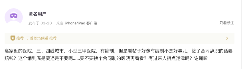 医院辞职有多难?来自求职板块版主@医昧平生分享:
