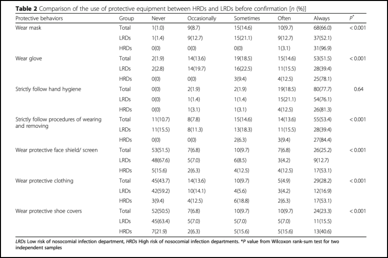 医务人员个人防护设备的使用情况图源:参考文献 [4]