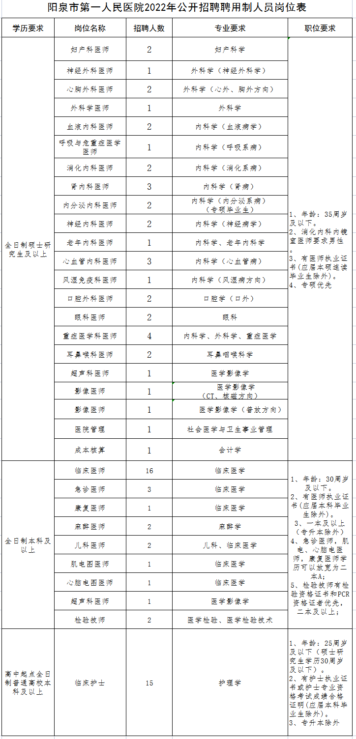 陕西 | 阳泉市第一人民医院招聘公告