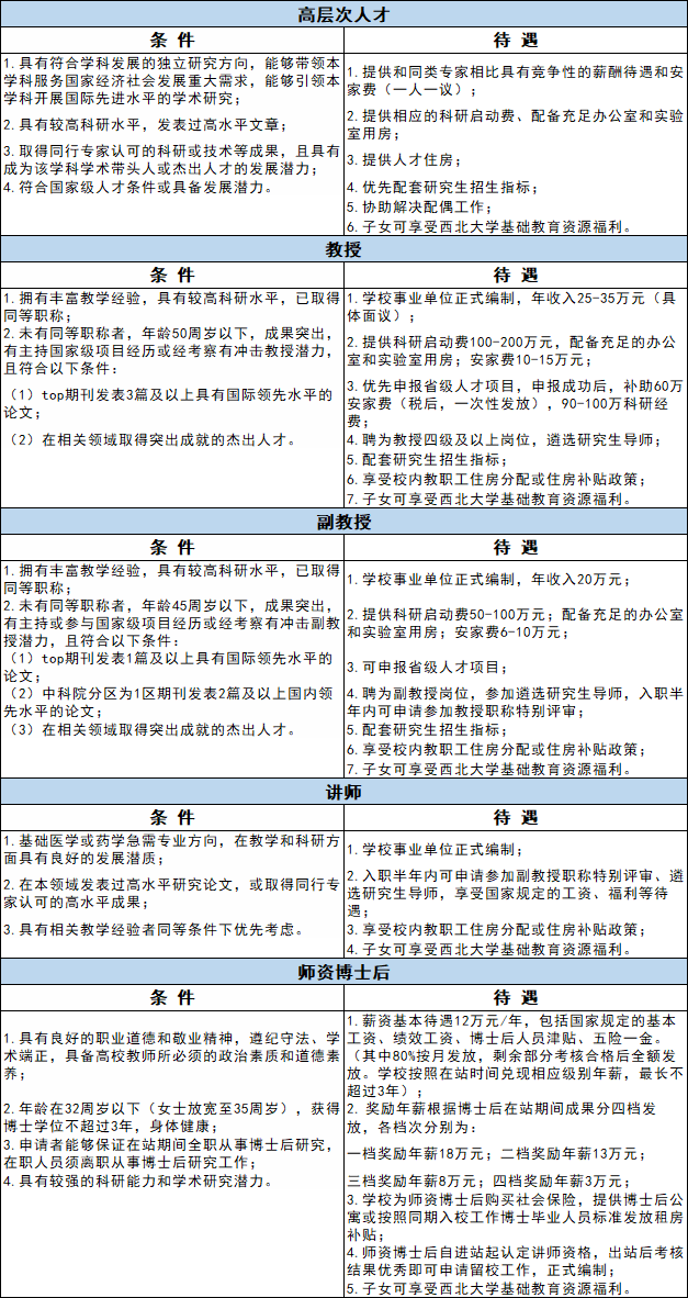 学部现为西北大学综合改革示范单位和「大部制」改革试点建设单位,拥有独立的职称评审权、导师遴选权和学科建设经费调配权。为完善学部人才队伍建设,不断提升人才培养质量,积极构建「大健康」学科集群,西北大学生命科学与医学部现面向海内外招聘专任教师及师资博士后。