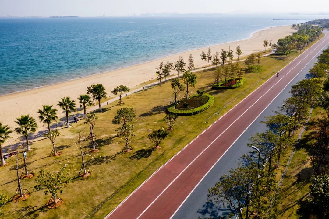 在「跨岛发展」战略指引下,同安作为岛外大发展的主战场,环东海域新城作为厦门全新的「颜值担当」领跑同安发展。新经济产业园依偎着环东海域新城碧蓝的大海和细腻的沙滩,椰风秀美,大片的红木林让整片园区更添一份浪漫。其中的办公楼、公寓、酒店和购物中心等富有城市气息的建筑与周边的美景融于一体,每一处都是绝佳的观景位,远远望去,仿佛园中有海,海中有园。更有多处景点,彩虹跑道、紫荆夜跑园等等已成为了新晋网红打卡地。