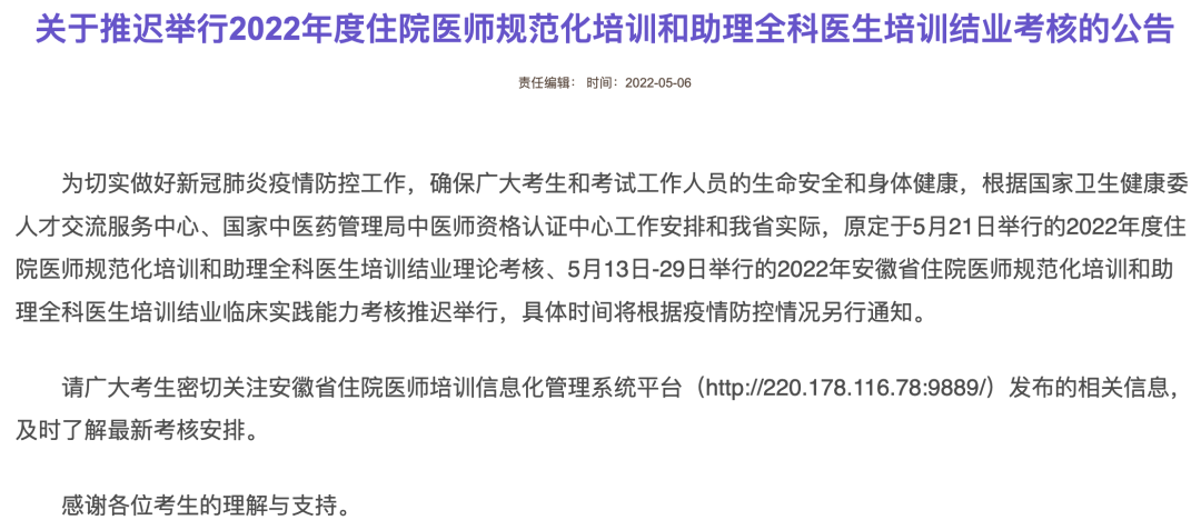 至于各地自行组织的规培技能考核,部分省份或城市已经完成,部分地区还在等待消息,部分地区如安徽等已经确认推迟进行。