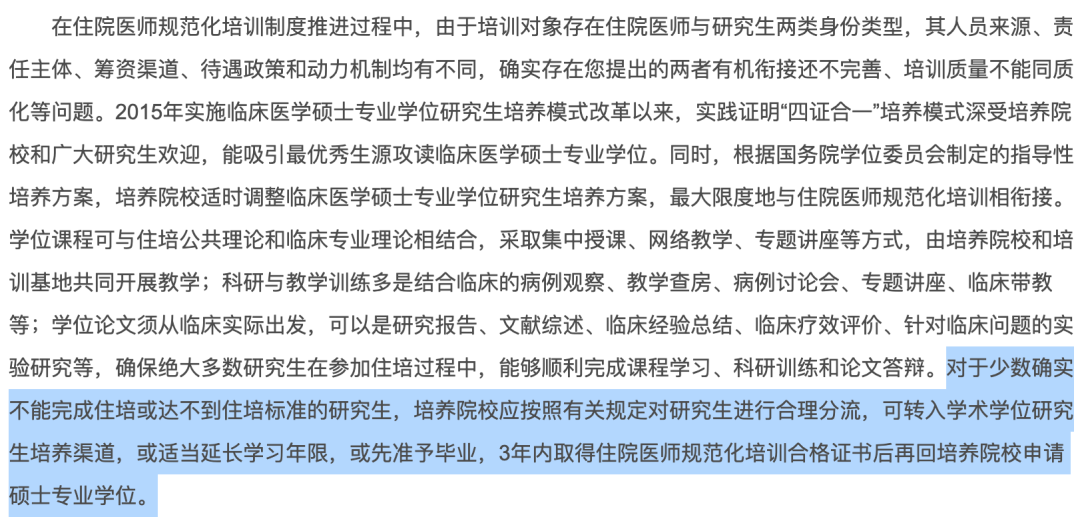 对于找工作或读博的专硕同学而言,规培证的延期获得,可能会同时导致学位证的发放受影响,甚至事实性延期毕业,进而在求职或申请博士时徒增一丝不确定性。