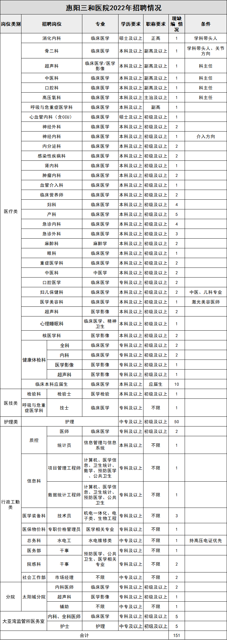 招 151 人 专本可投 办理落户 提供宿舍 丨三级综合医院医技护均招