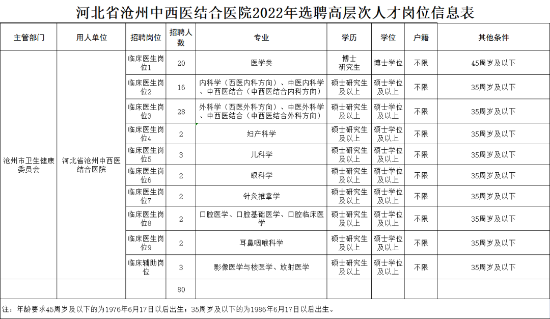 >> 河北省沧州中西医结合医院招聘岗位及要求
