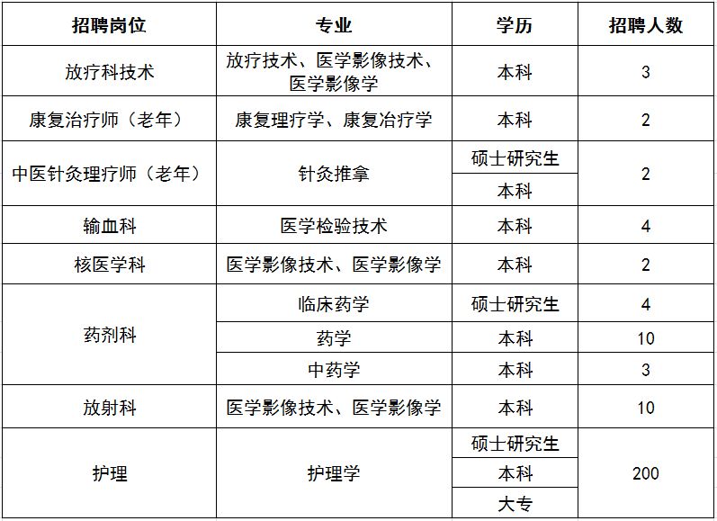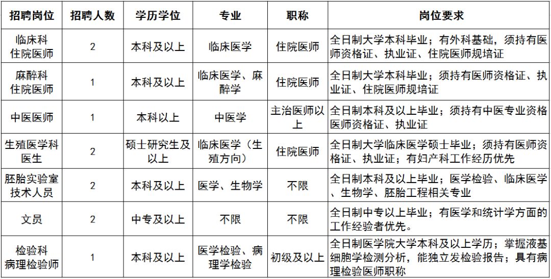 1. 岗位要求:硕士及以上学历,临床医学专业,年龄在 30 周岁以下;具有执业医师资格;英语达到六级水平。