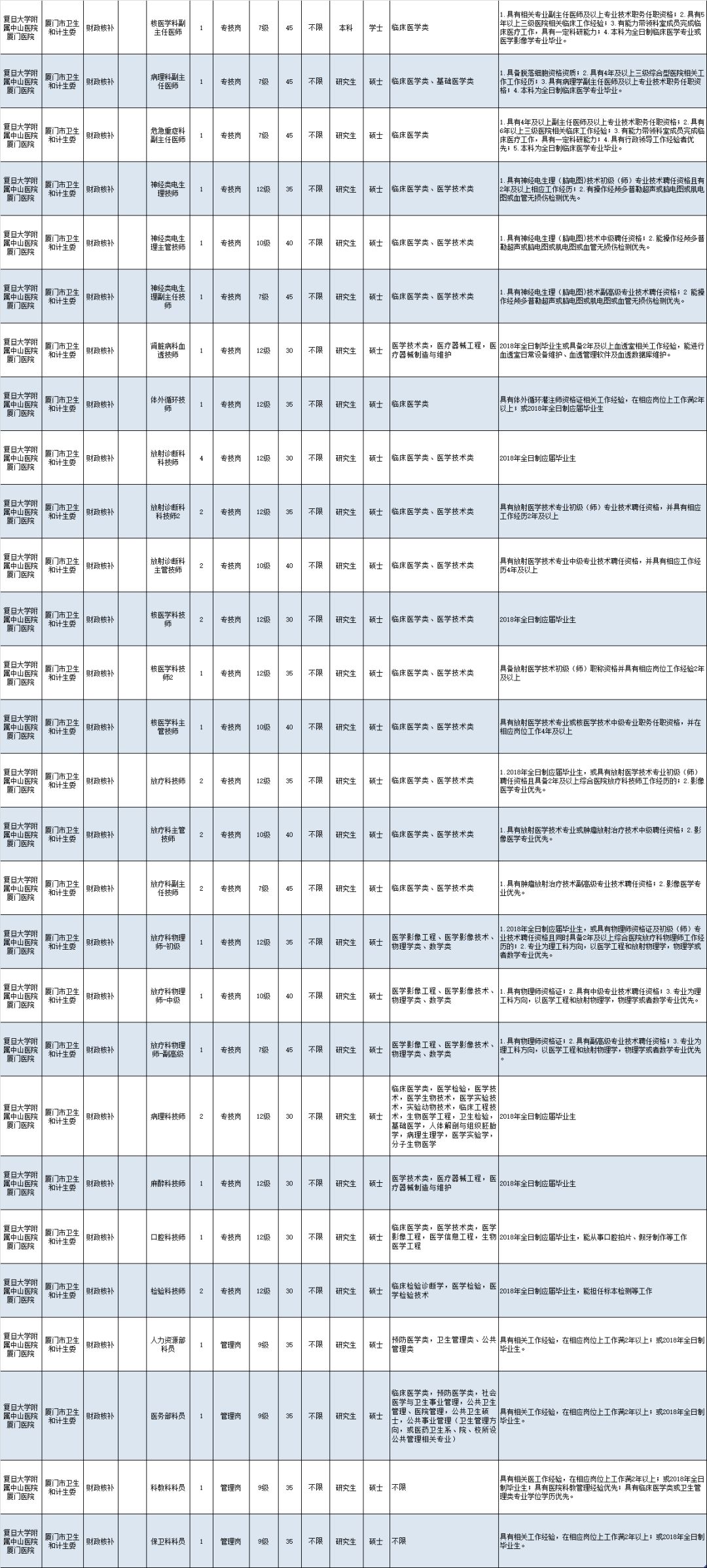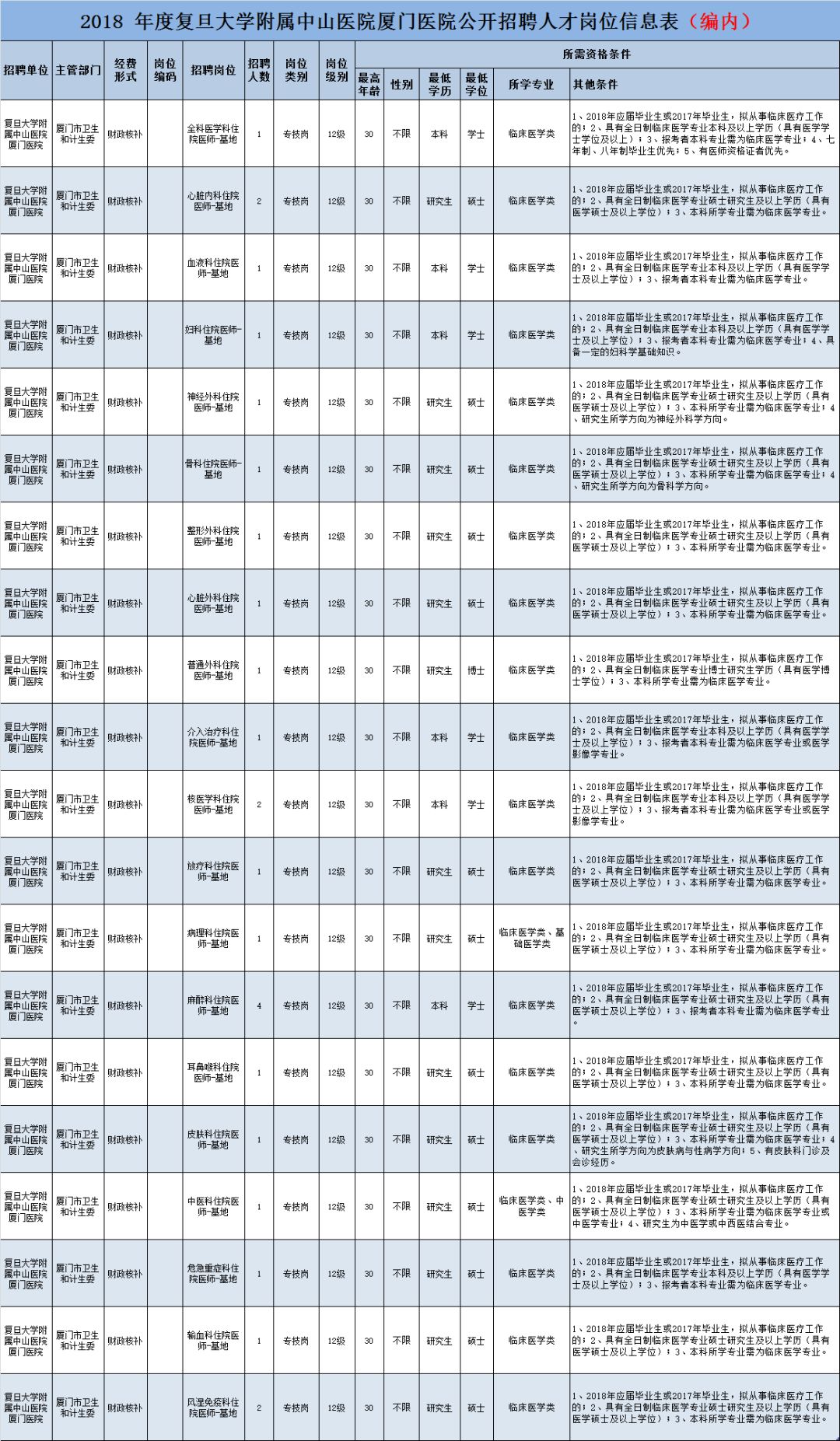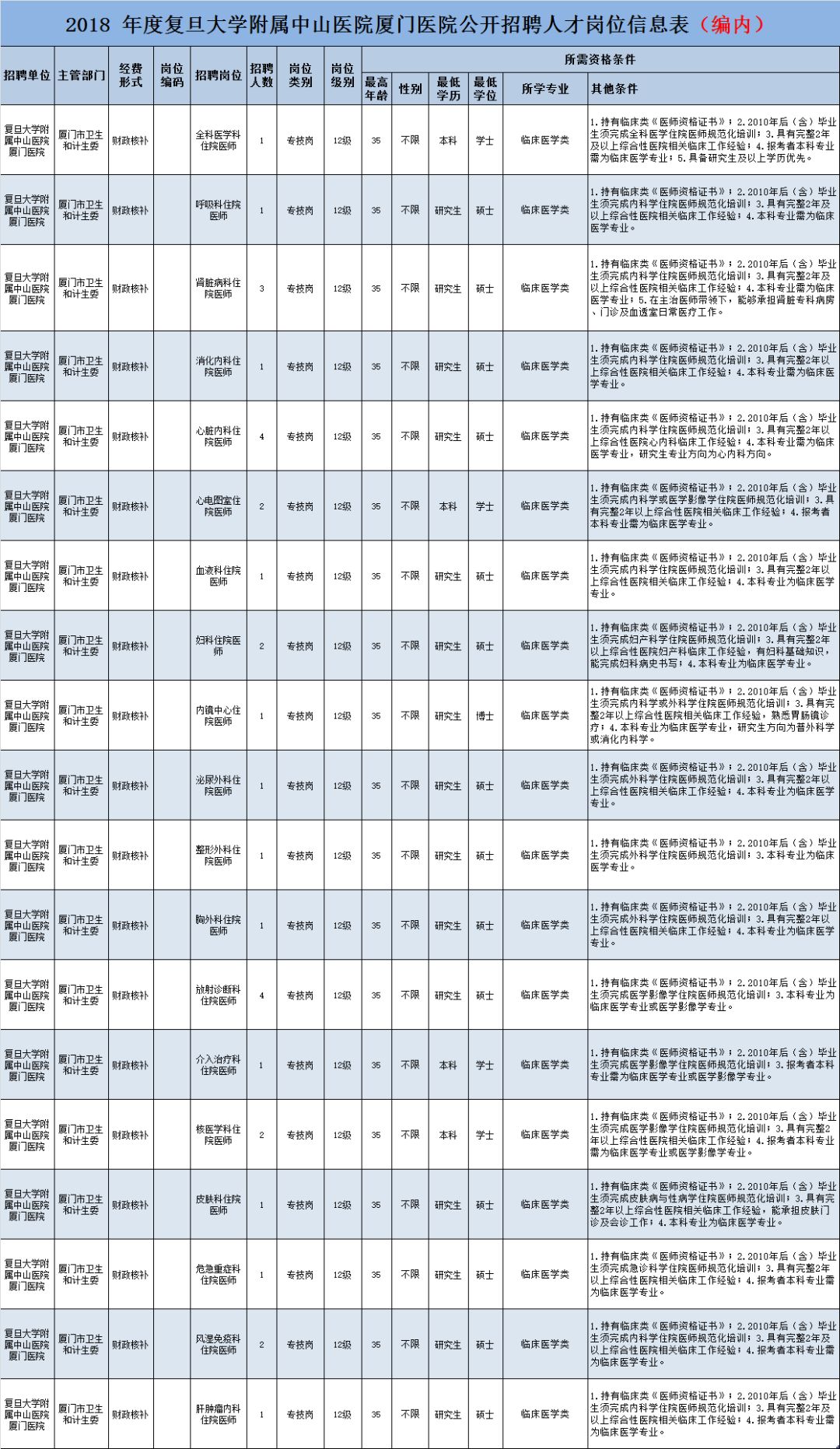 2. 其中住院医师岗位, 硕士研究生入厦门医院服务 2 年后,医院将择优推荐参加复旦大学临床医学博士专业学位教育与专科医师规范化培训相结合试点项目,有机会在复旦大学附属中山医院进行专科医师培训并获得博士学位(需通过项目规定的考试)。