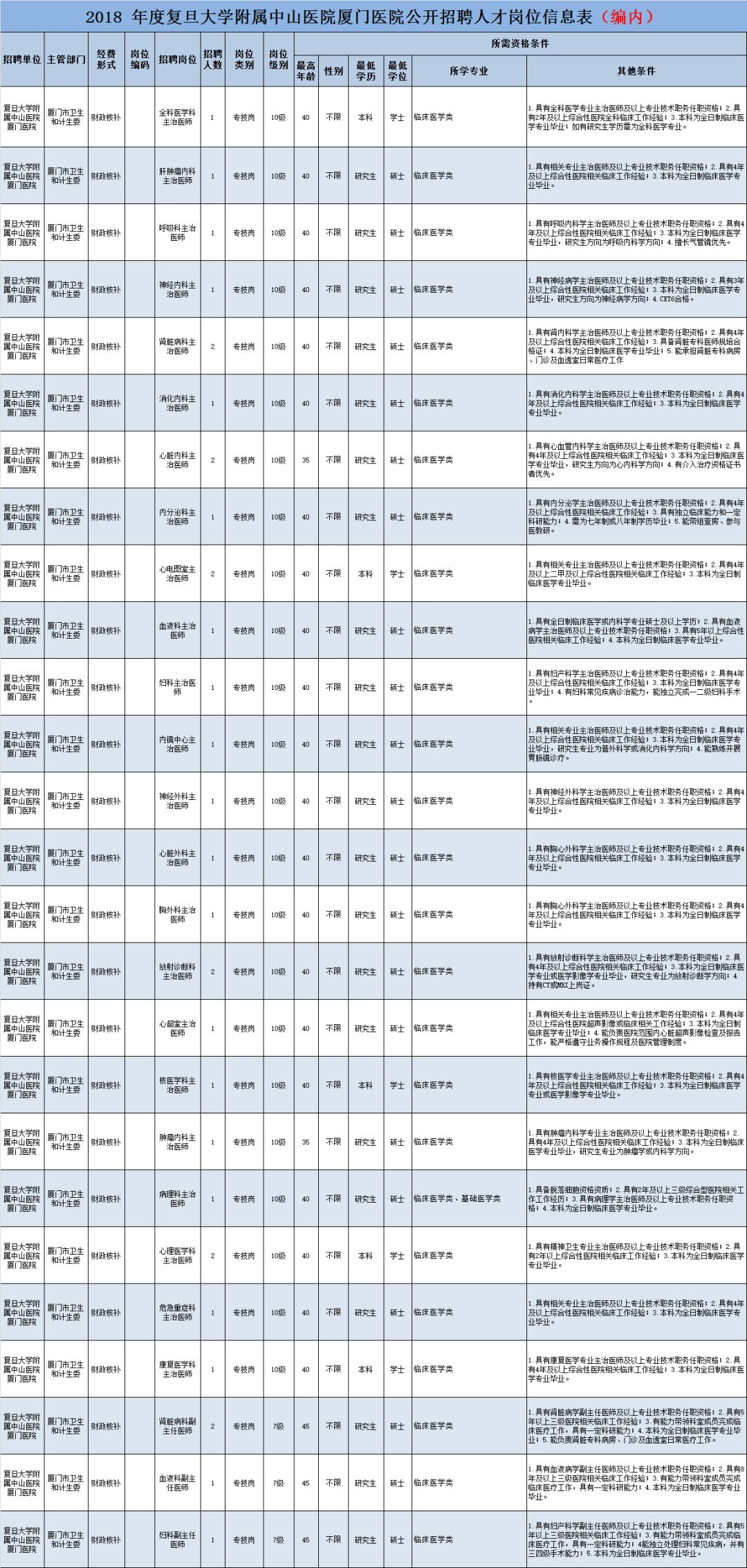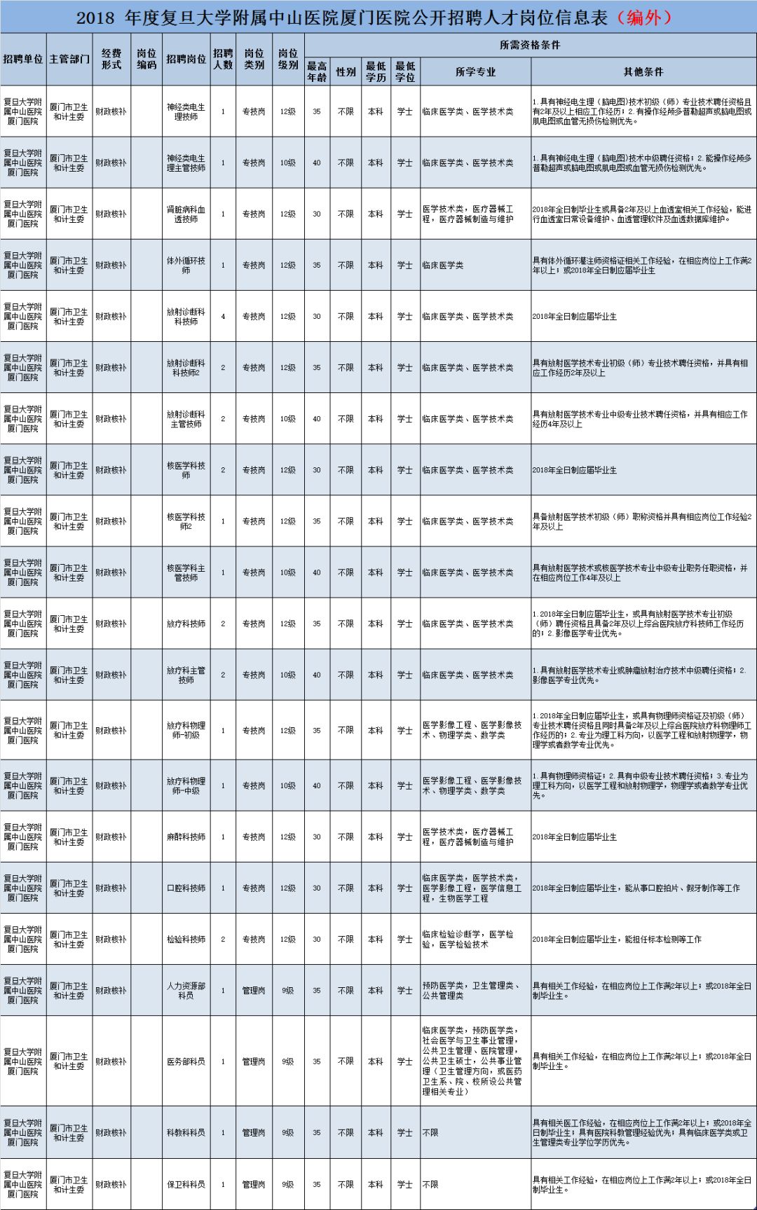 1. 此次招聘人员与复旦大学附属中山医院厦门医院签订人事用工合同。今后工作地点为复旦大学附属中山医院厦门医院。