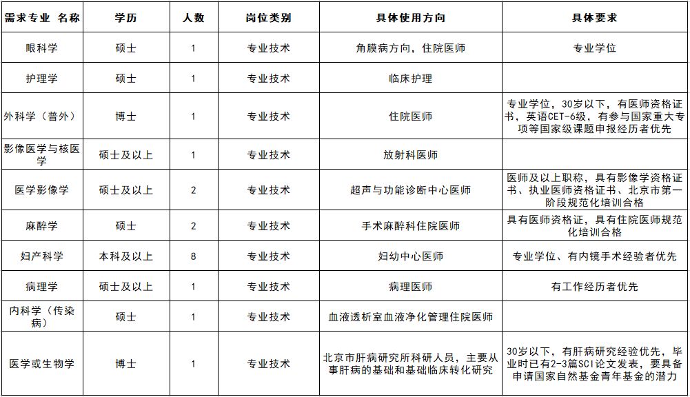 2. 岗位要求:符合《中日友好医院毕业生接收工作管理办法》的基本条件,接收毕业生要求全日制本科起点;成绩优良,研究生须通过国家英语六级考试,本科生须通过国家英语四级考试。