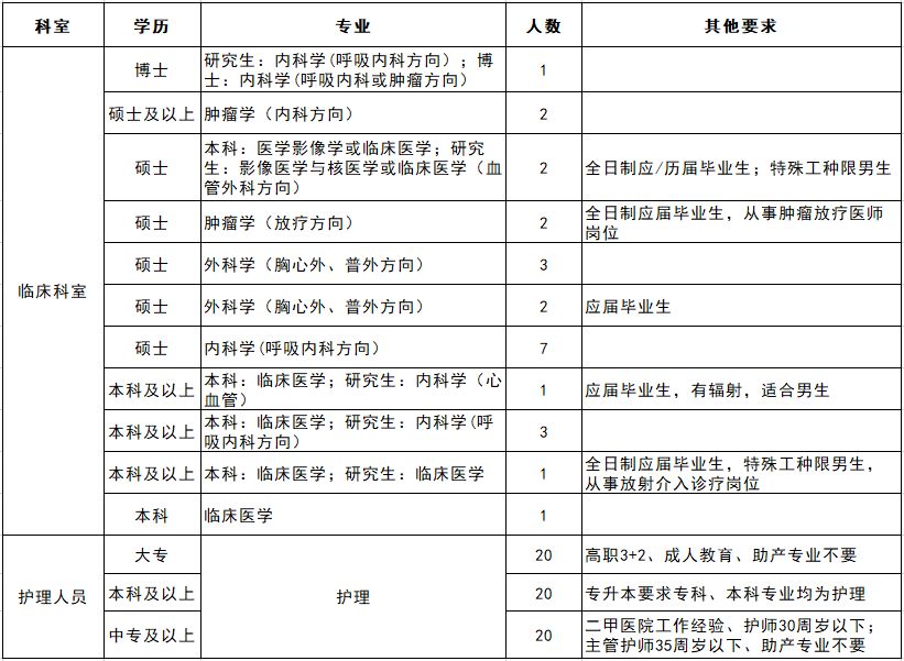 1. 招聘要求:医学、护理或生物学相关专业,护理专业优先!本科及以上学历,往届和应届不限;年龄要求 22 - 35 岁,男女不限;熟悉或掌握消化道肿瘤相关知识,并了解临床试验的操作流程;或熟悉临床诊疗流程;