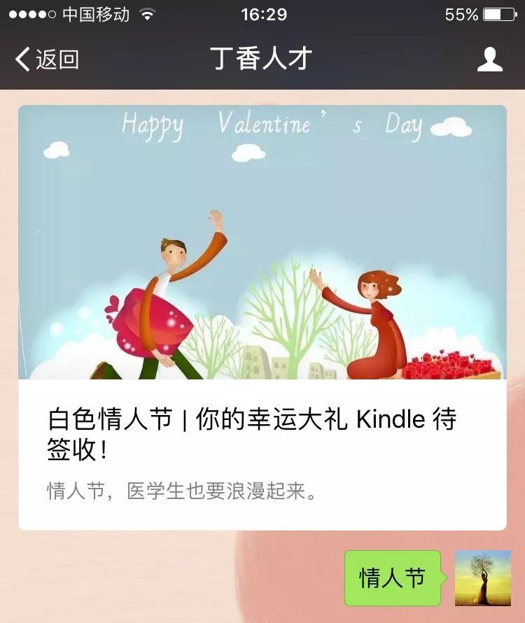 1. 在丁香人才对话框回复「 情人节」,50 的倍数即为中奖,99 把黑胶龙猫两用晴雨伞送完为止;