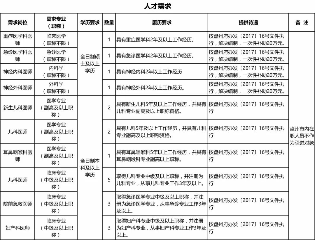 关于印发《盘州市卫生专业技术人才引进工作实施方案》的通知