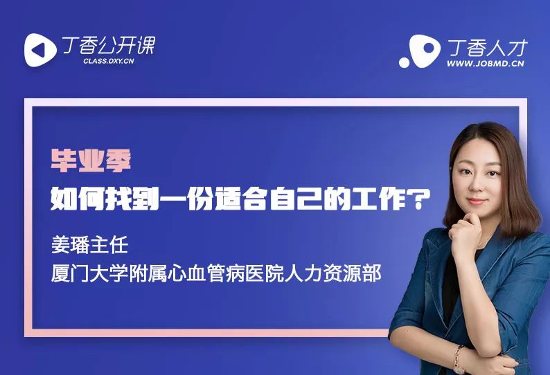 我们邀请了厦门大学附属心血管病医院人力资源部主任姜璠,带来第一期丁香菁英计划公开课 《毕业季,如何找到一份适合自己的工作》。