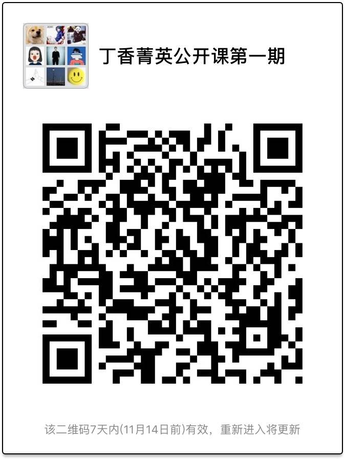 此外,还可以加入丁香菁英计划公开课讨论小组,我们将在 11 月 7 日-8 日邀请主讲姜璠老师在群内答疑。