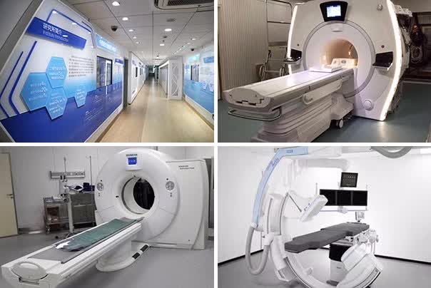 医院拥有现代化 GE3.0T 750W 核磁共振、数字断层扫描 X 线影像系统(双源)、ECT、大型高压氧舱、数字减影 X 线影像系统(DSA)、数字式 X 线摄片系统等一批先进的医疗仪器设备。