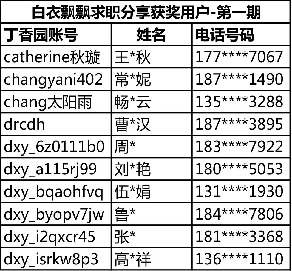 只要新建简历并分享白衣飘飘招聘会,即可获得丁香人才求职礼包机会,每周五公布当周获奖名单。