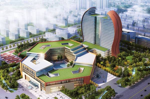 建设中的新医院是一所股份制医院,参照事业单位管理,总用地面积 108.8 亩。医院总床位数 2 000 床,一期拟开放床位 1 100 张,总建筑面积约 25.5 万平方米,预计 2018 年投入使用。