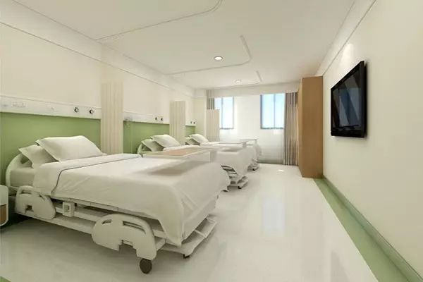 其中:一层设有急诊科、发热门诊、肠道门诊、专家门诊、手外科门诊、内科门诊、骨科门诊,二层设有门诊手术室、妇科门诊、妇科检查治疗区、颌面外科,三层设有手术室区域建筑面积约 1 050 平方米、ICU 区域建筑面积约 510 平方米,四层中心供应区域建筑面积约 598 平方米,五层产科区域建筑面积约为 440 平方米。六层至十七层设有病房约 600 张床位,建筑面积约 2 700 平方米。十八层为行政办公区域。