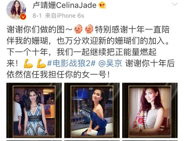 而关于「战狼 2」的话题,从一开始的「犯我中华者,虽远必诛」、「吴京」慢慢转到了电影的女主角——卢靖姗。