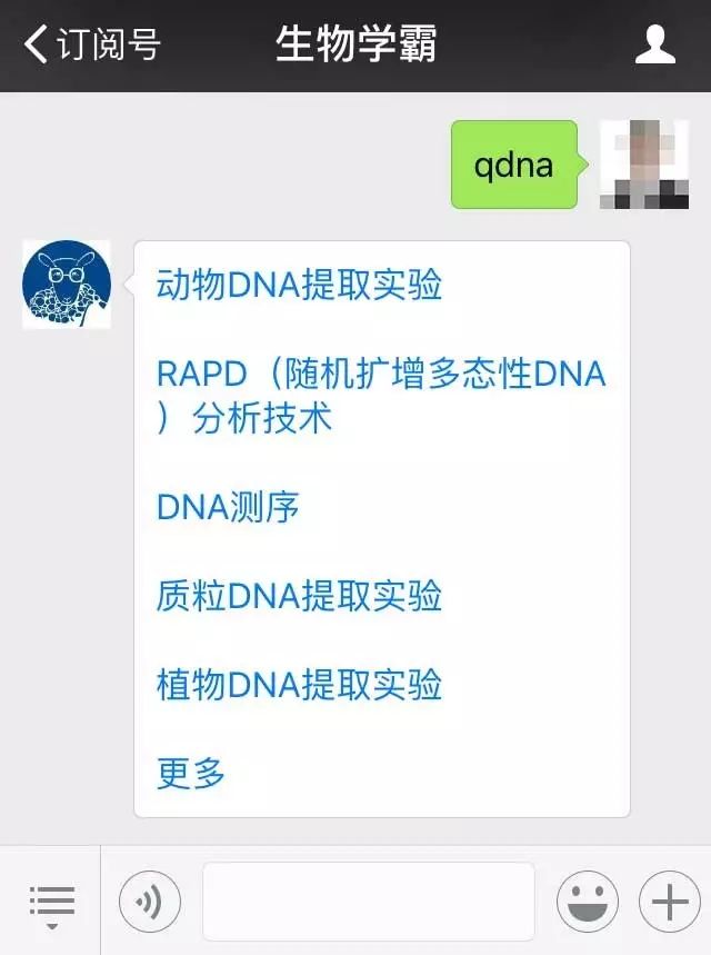 是的,你没看错,通过公众号就可以搞定,随时随地轻松召唤 Protocol,只需在生物学霸公众号后台回复「q+实验关键词」即可。