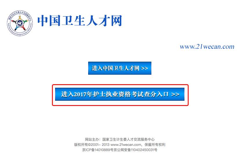 考生可凭准考证号和有效证件号登录中国卫生人才网 http://www.21wecan.com 查询成绩!