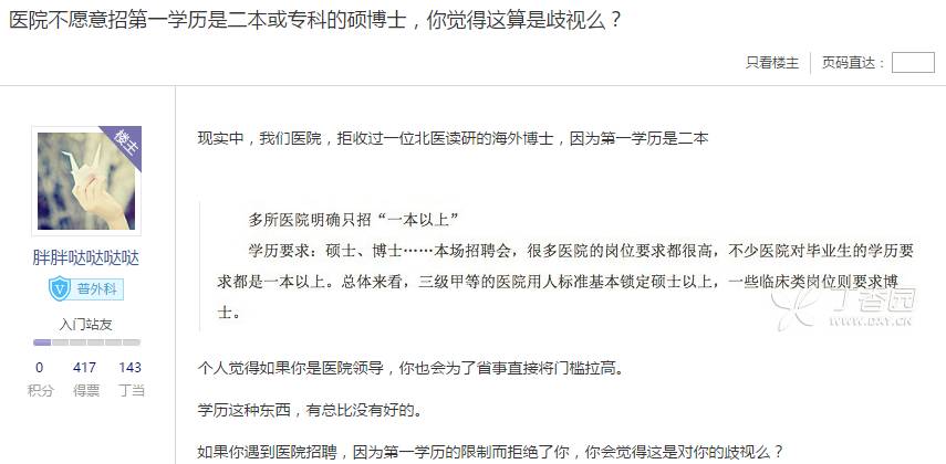 医院不愿招第一学历为「非一本」的硕博生,这是歧视吗?