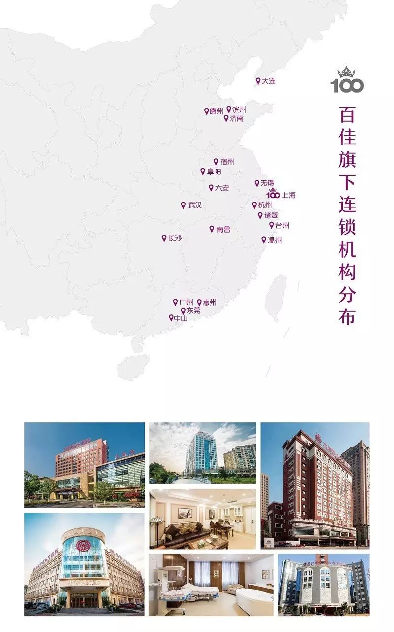 百佳妇婴医疗专业连锁机构由摩根士丹利、蓝点医疗、百佳妇婴健康产业控股集团等共同投资,目前成功投资与管理运营的妇婴医疗专业连锁机构已经覆盖上海、广州、武汉、杭州、长沙、东莞、无锡、大连等二十一座城市。