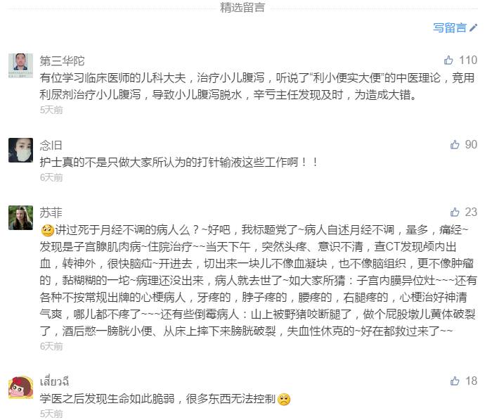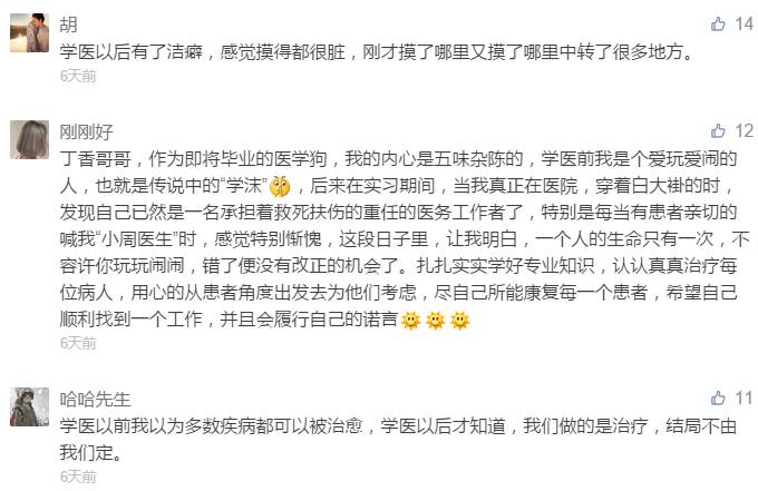 在上一期深夜食堂里,哥哥问了大家伙儿:学医以后,你的哪些三观被刷新了?当时我们约定的是,在留言区留言,点赞数 top 10 的朋友将收到丁香人才的一些小礼品。我们先来看看结果吧: