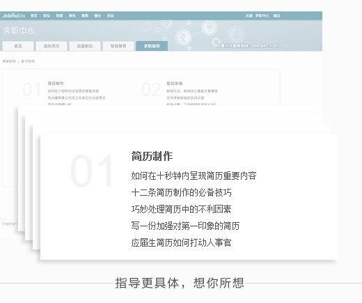 如何投递职位、如何面试、怎样写简历、简历的十大误点……这类文章网上要多少有多少,千篇一律让很多人不由生厌。求职中心新增「求职指导」,从四个方面指导你如何找工作,有哪些注意事项;同时「新手指导」会让你快速上手,轻松进入求职状态。