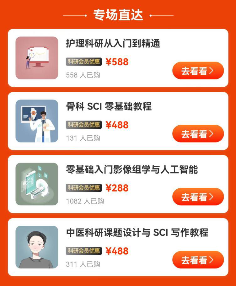 护理、骨科、影像、中医!相关科室的同学可别错过啦,零基础的同学搭配科研会员使用效果更佳哦~