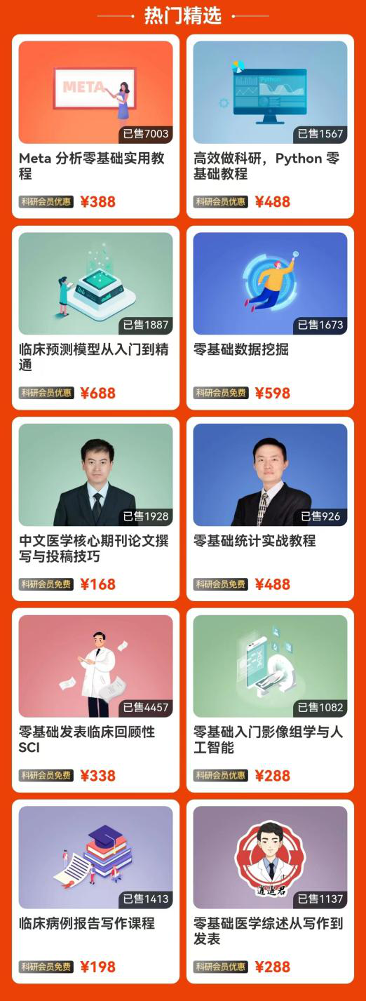 没有系统的临床研究知识,科研工作很难进行。加入科研会员!10000+ 同学的选择。23 门临床科研体系课程+写作训练营 2 选 1 任意学,更有会员专属答疑区,提供一年内无限次答疑权益,把你的科研论文安排得明明白白!
