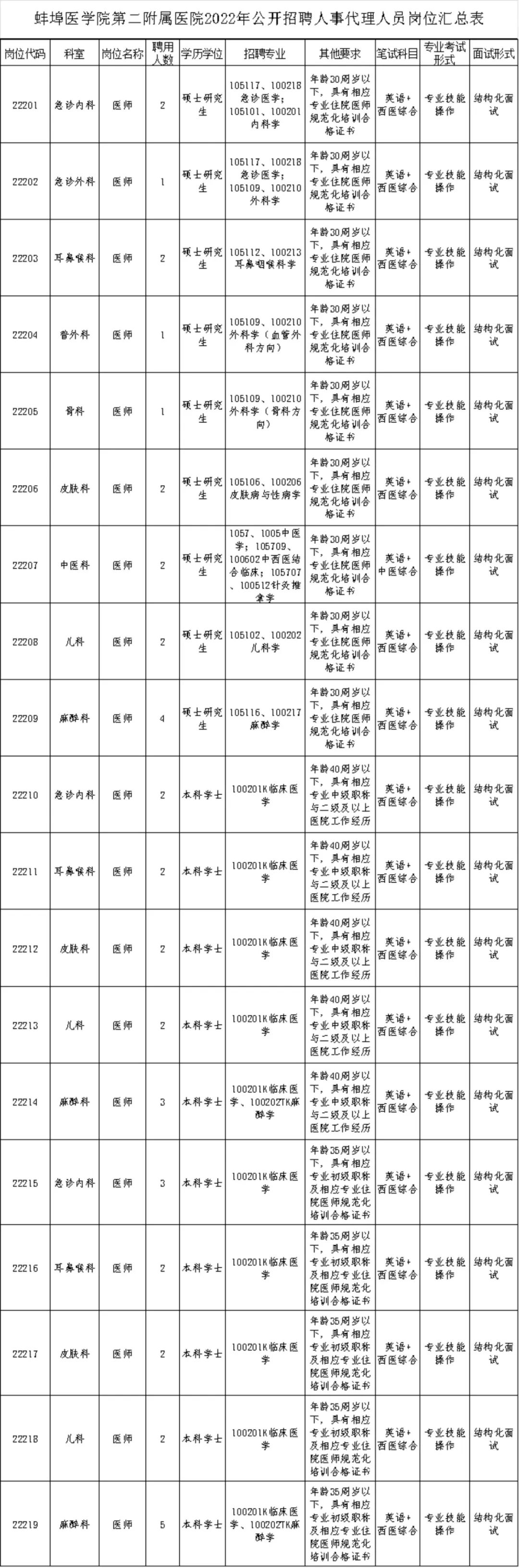 >> 蚌埠医学院第二附属医院招聘岗位及要求