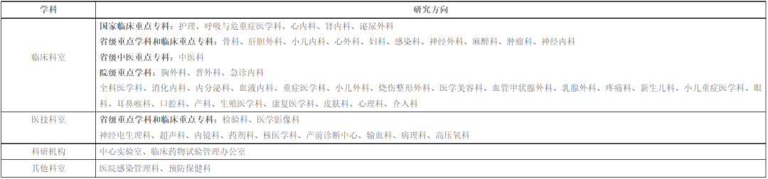 编制床位 2000 张,开放床位 3000 张,设有 4 个院所和 61 个临床、医技科室。在国家卫生健康委举办的全国 2300 余家三级公立医院绩效考核中,医院连续两年荣膺 A+ 优等,在全国省级人民医院排名第四、全省三级公立医院排名第一。