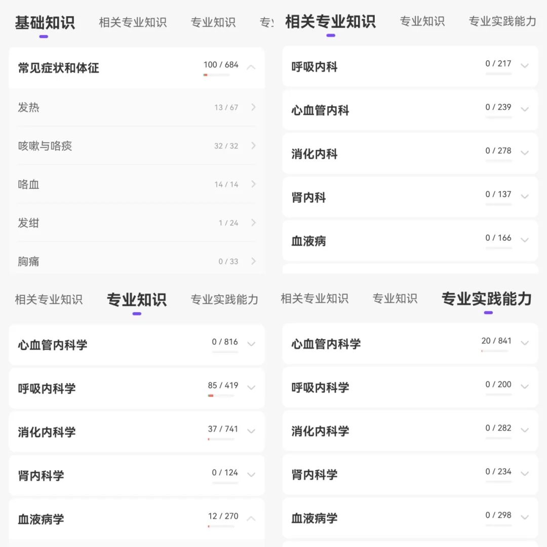 题库按主治考试要求,拆分为 4 门科目:基础知识、相关专业知识、专业知识与专业实践能力,分科刷题,全面复习大纲考点,刷题效果更佳!