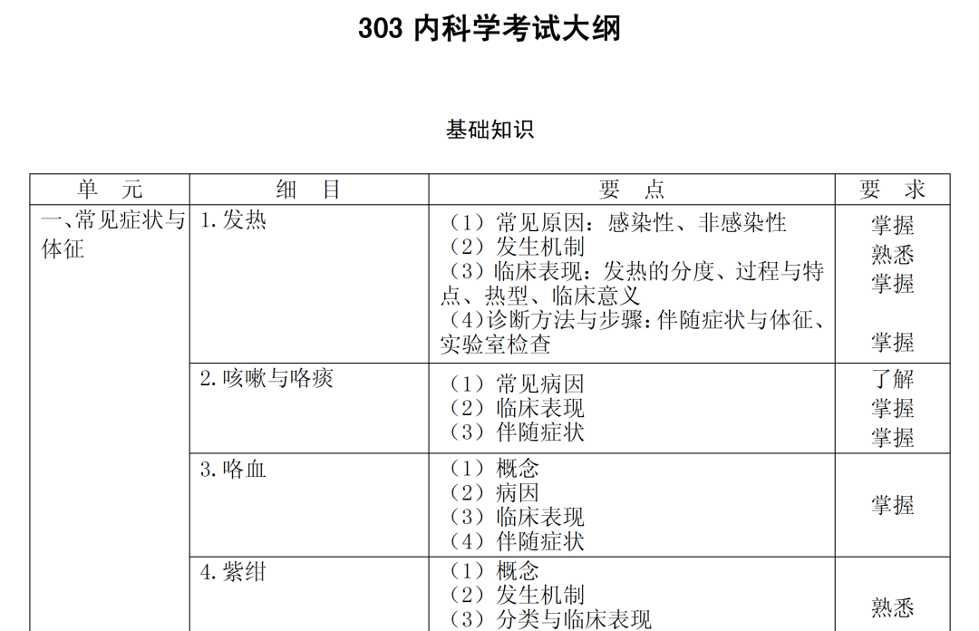 以内科学主治题库为例,以下是内科 303 考试大纲的基础知识部分: