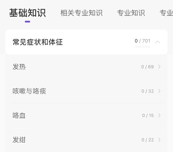以下是丁香医考内科学题库基础知识科目的目录部分的展示: