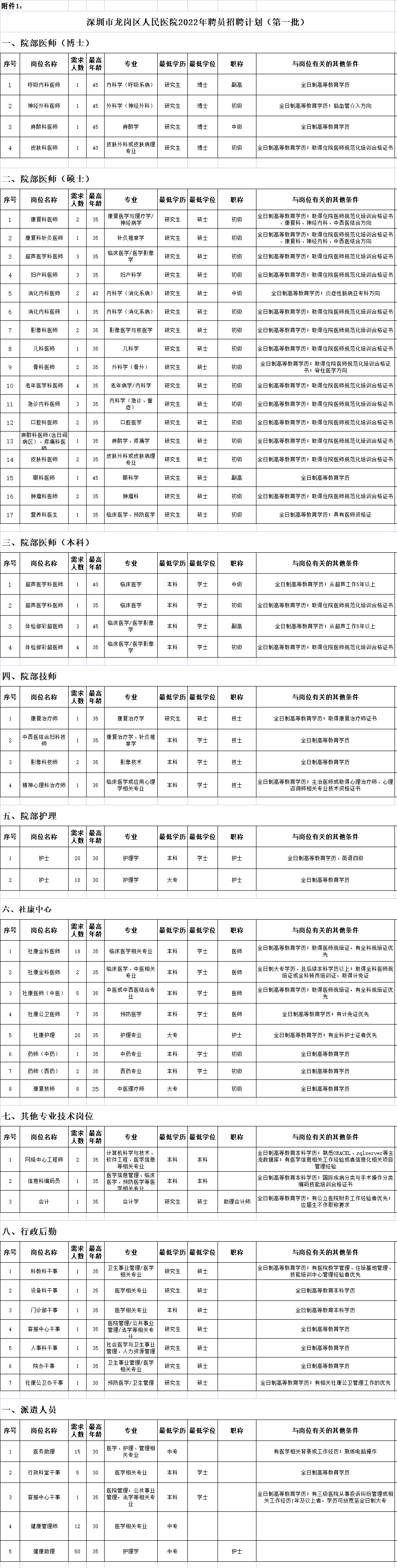 >> 深圳市龙岗区人民医院招聘岗位及要求