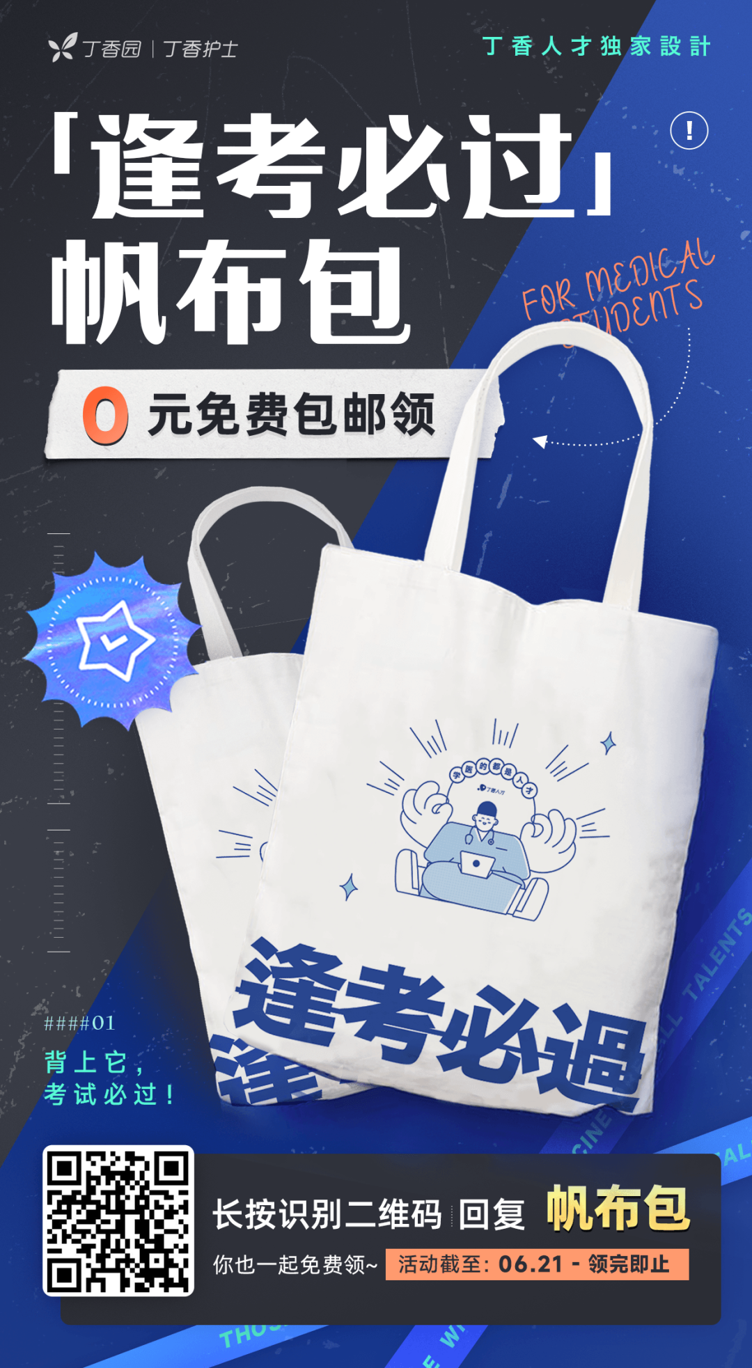*本次活动仅限护士或医学生领取 关注公号后回复 帆布包 也可以参与活动
