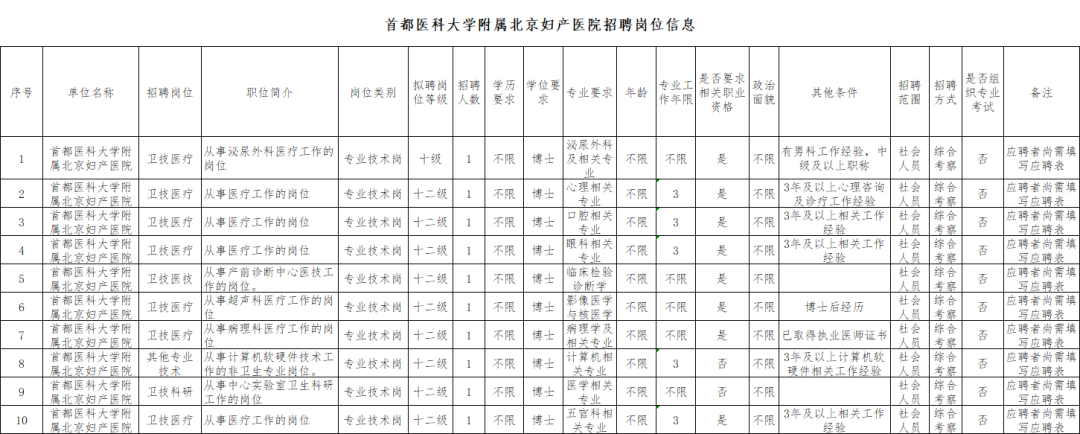 北京 | 首都医科大学附属北京妇产医院招聘公告