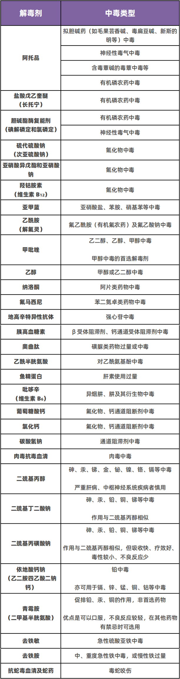 急性中毒抢救必知 30 种解毒剂,一表理清(建议收藏)