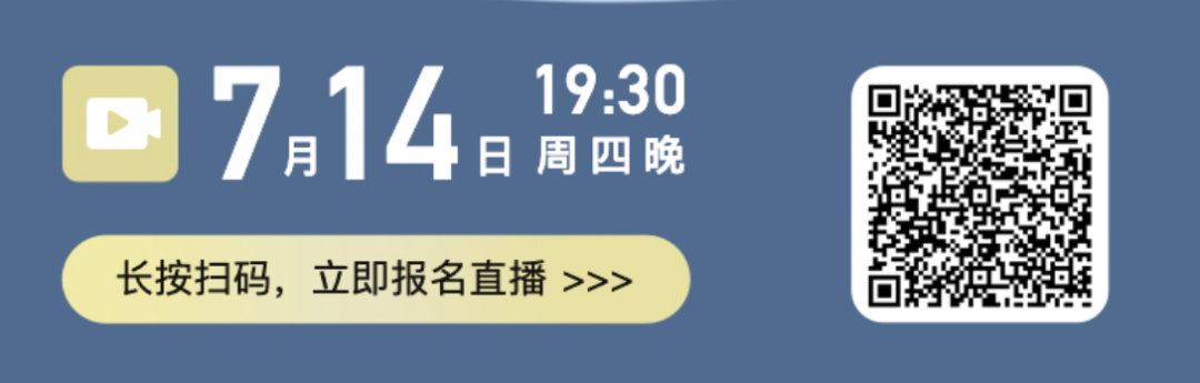 开播时间( 7 月 14 日,19:30 )扫描下方二维码,立即报名 ⬇️