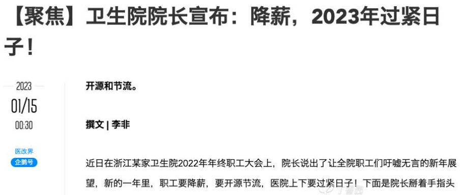 部分医院经营困难医护降薪,站友:行政工资不变