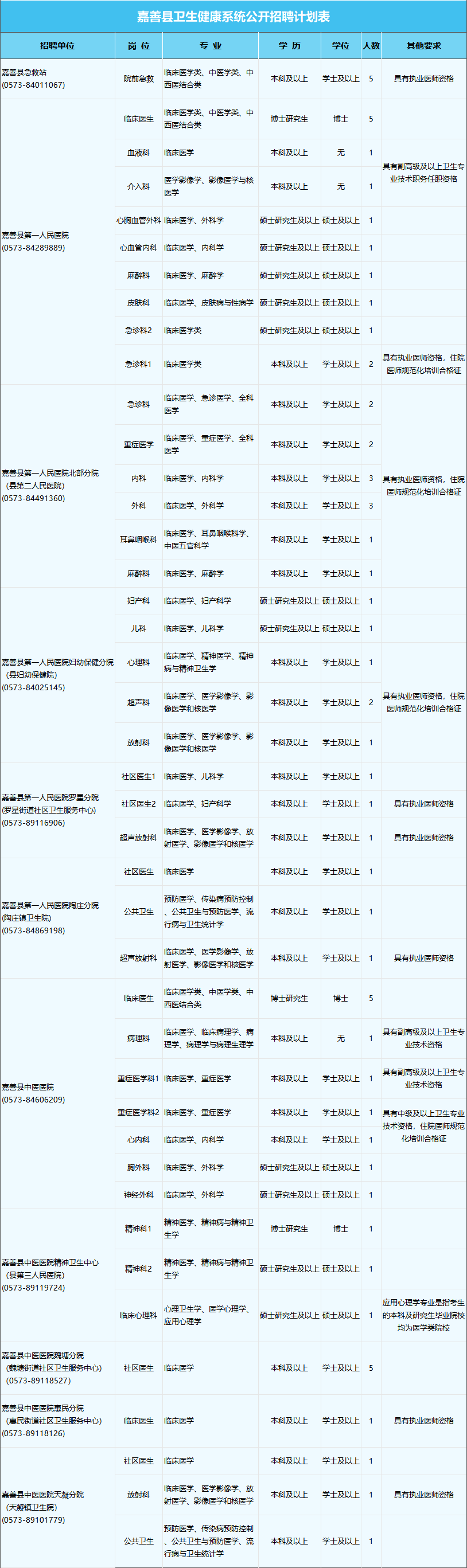 嘉善县卫生健康系统公开招聘事业单位卫生专业技术人员 66 名:
