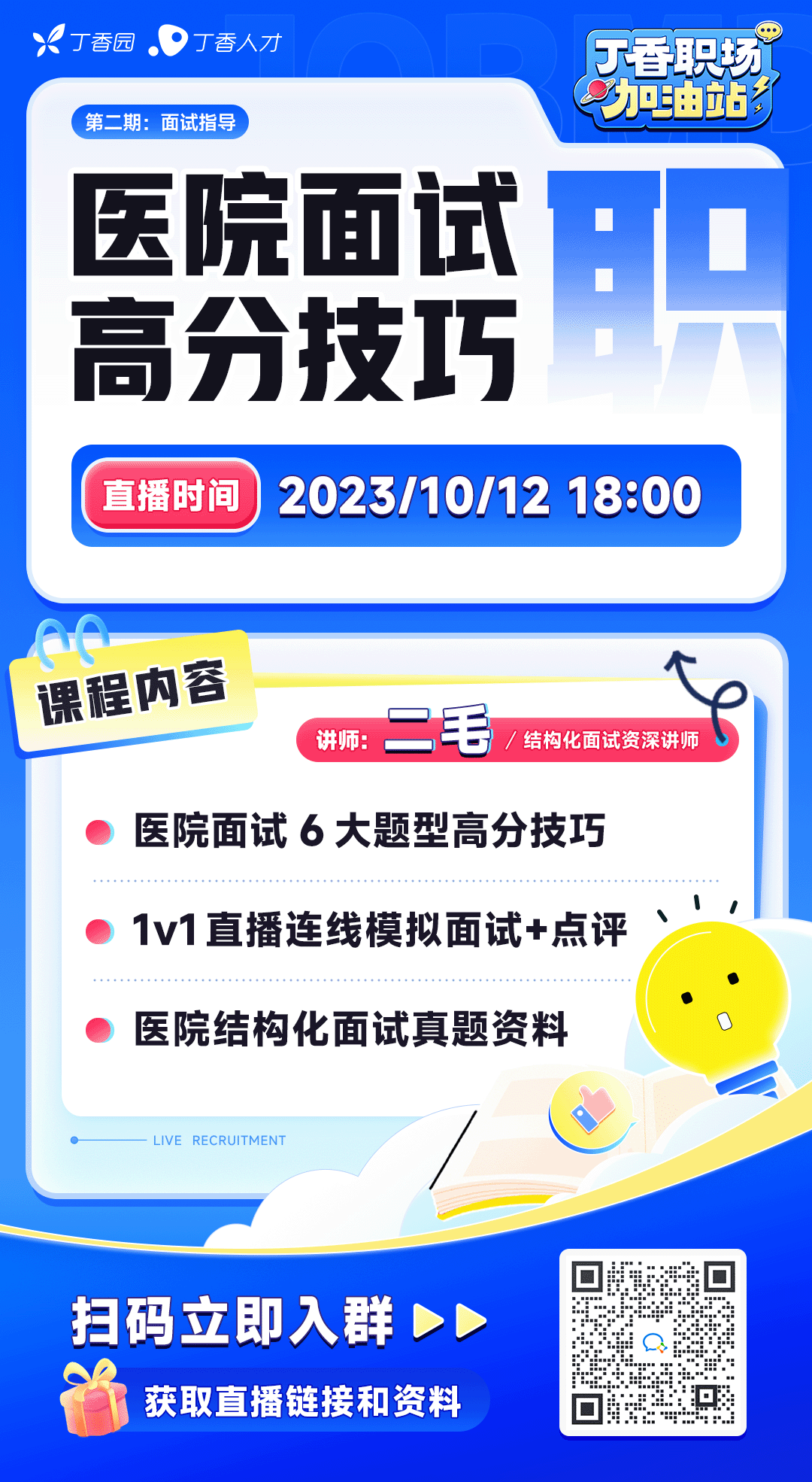 丁香人才致力于帮助医生护士提升职场软实力,特意邀请了 医疗结构化面试资深讲师二毛老师,来分享医院结构化面试高分技巧。