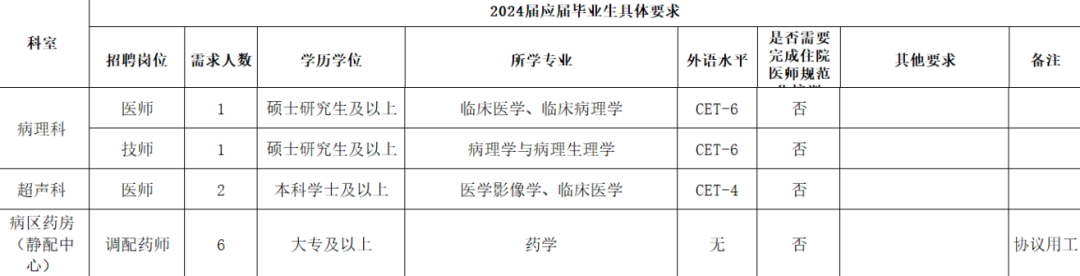 因医院发展需要,现面向 2024 年全日制普通高校应届毕业生招聘工作人员 114 名。现将有关事项公告如下: